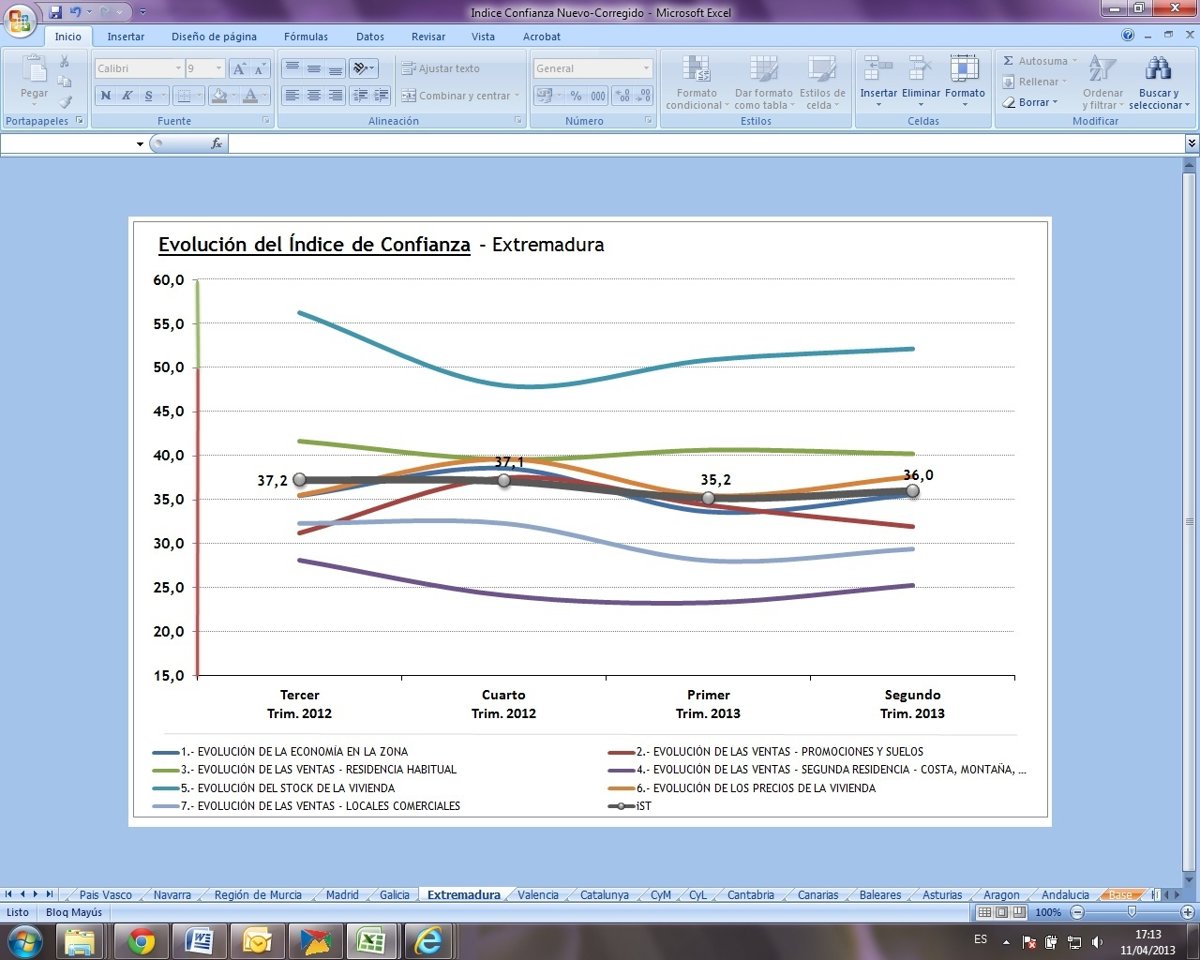La confianza en el sector inmobiliario extremeño continúa su "tendencia negativa", según ha reflejado el Índice de Confianza de Sociedad de Tasación para el segundo trimestre de 2013.