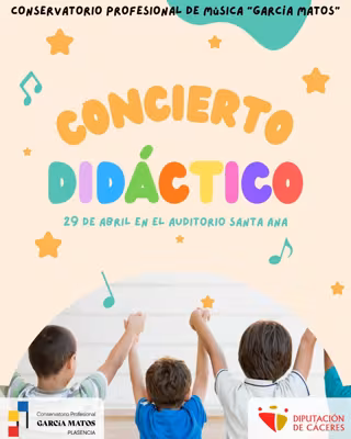 Cerca de 800 escolares de 4º, 5º y 6º de Educación Primaria, procedentes de siete centros educativos de Plasencia y del norte de Extremadura, participarán este miércoles, 29 de abril, en los conciertos didácticos organizados por el Conservatorio Profesional de Música García Matos de la Diputación de Cáceres.