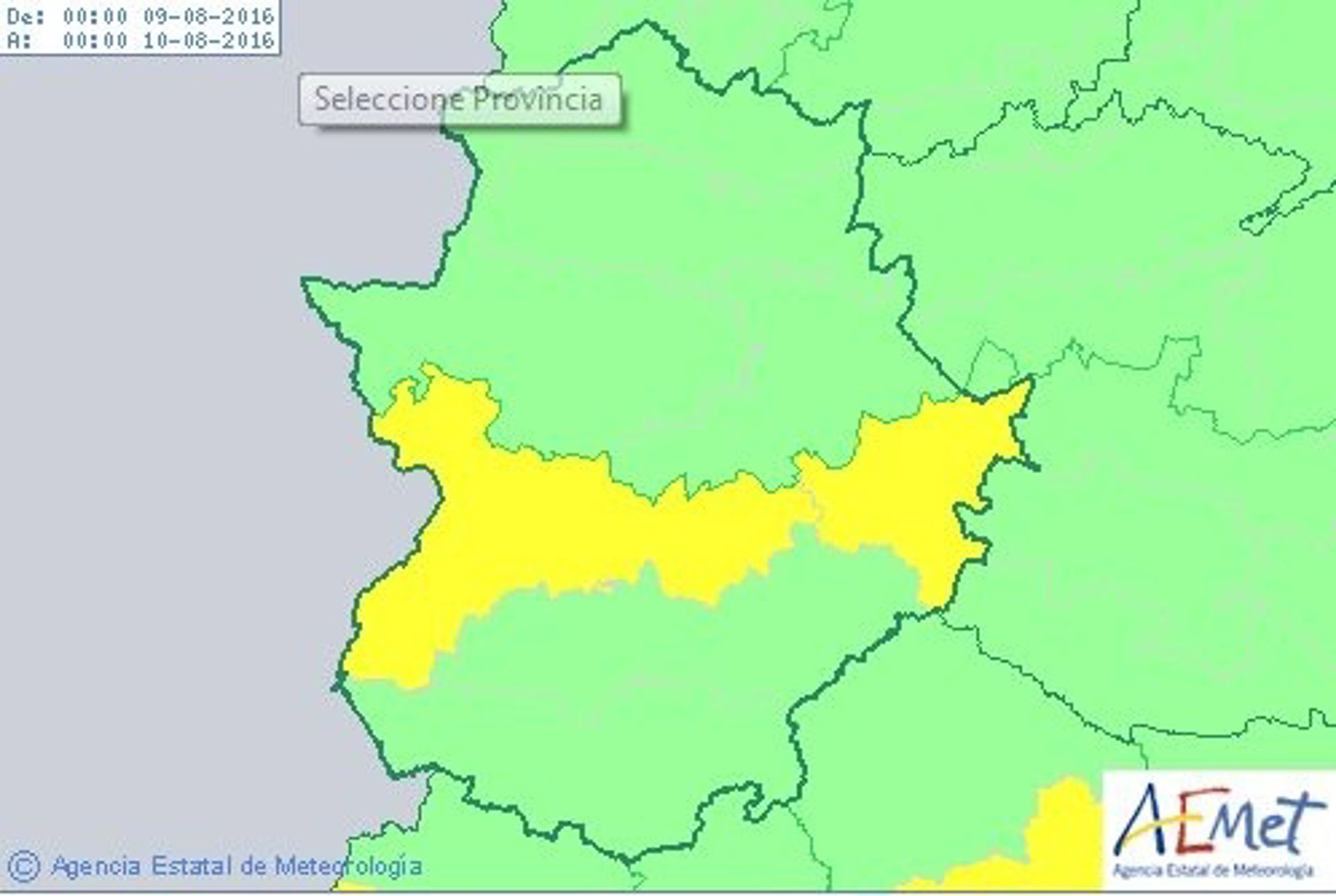 Las comarcas pacenses de las Vegas del Guadiana y La Siberia Extremeña permanecerán este martes, 9 de agosto, en alerta amarilla por altas temperaturas, que podrán alcanzar máximas de 39 grados.