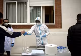 Un sanitario durante la realización de tests de RT-PCR en saliva - Óscar Cañas - Europa Press
