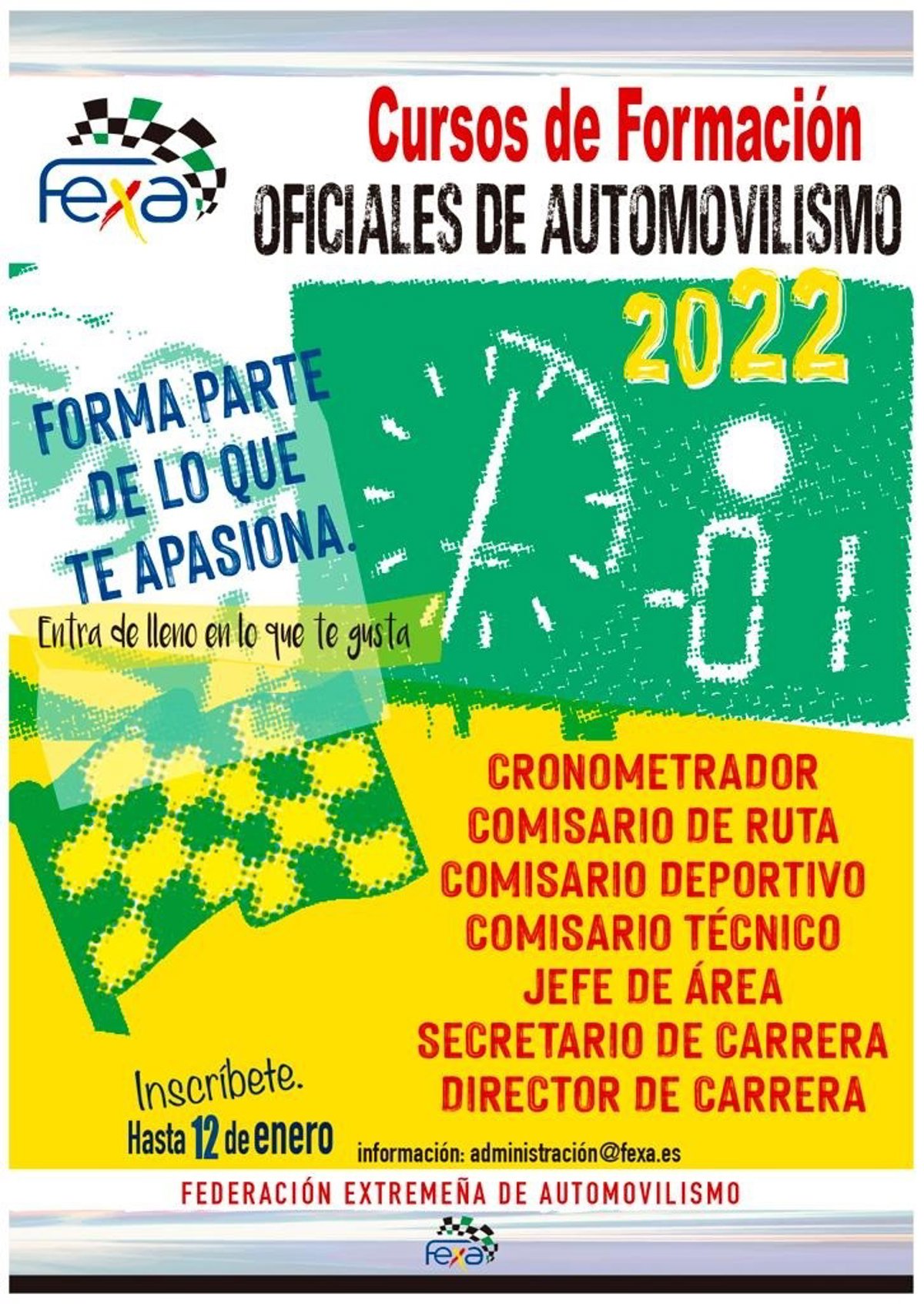 Cartel de cursos de formación para oficiales de automovilismo en Extremadura - FEDERACIÓN EXTREMEÑA DE AUTOMOVILISMO