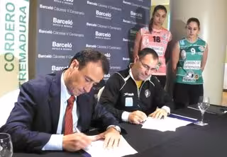 El Consejo Regulador de la IGP Cordero de Extremadura 'Corderex' y el Club Femenino de Voleibol Arroyo de la Luz han firmado este jueves en Cáceres un convenio de colaboración para el patrocinio del equipo deportivo por Corderex durante la temporada 2014-2015.