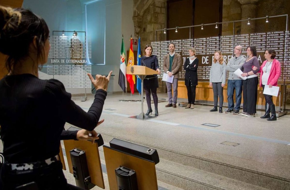 El cortometraje se ha presentado este miércoles, en la sede de la Presidencia de la Junta, por la consejera de Igualdad y portavoz del Ejecutivo regional, Isabel Gil Rosiña; el director Antonio Gil Aparicio; el vicepresesidente de Cermi Extremadura, José Manuel Cercas, y algunos de los actores del mismo.