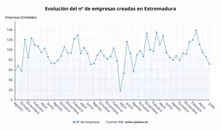 La creación de empresas registró un descenso del 15,3 por ciento el pasado mes de julio en Extremadura en comparación con el mismo mes de 2021, lo que supone una caída casi un punto superior a la de la media del país, que se situó en el 14,4 por ciento, con todas las comunidades en negativo, según datos del Instituto Nacional de Estadística (INE) recogidos por Europa Press.