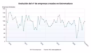 La comunidad autónoma de Extremadura ha registrado la creación de 98 empresas en el pasado octubre en comparación con el mismo mes de 2019, lo que supone que el indicador se mantiene sin variación respecto al mismo periodo.