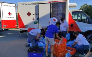 Voluntarios de cruz roja preparan los avituallamientos para el personal que lucha contra el incendio en Las Hurdes. - CRUZ ROJA EXTREMADURA