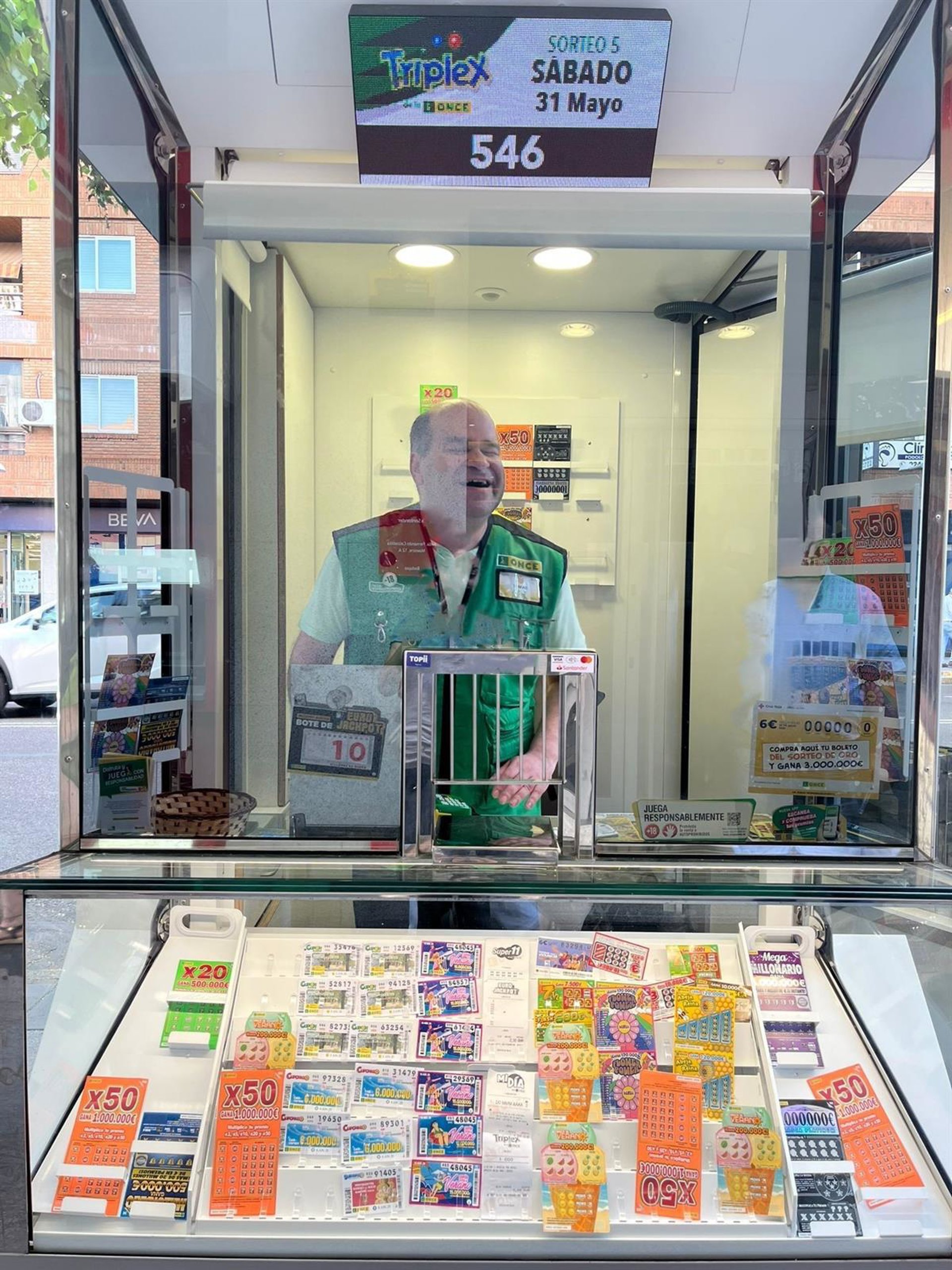 Tomás Lara Barroso, vendedor de la ONCE desde el 2003, ha sido quien ha llevado la suerte a Badajoz desde su quiosco situado en la calle Fernando Calzadilla nº 14.