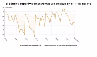 El déficit de Extremadura se ha situado en 228 millones hasta el mes de noviembre, lo que representa el 1,1 por ciento del PIB, según los datos publicados este martes por el Ministerio de Hacienda.