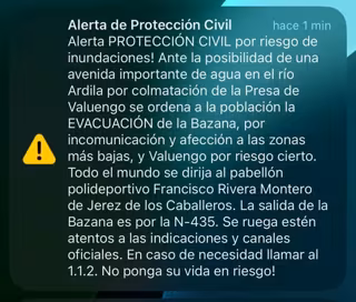 ES-Alert enviado a los vecinos de La Bazana y Valuengo - 112 DE EXTREMADURA