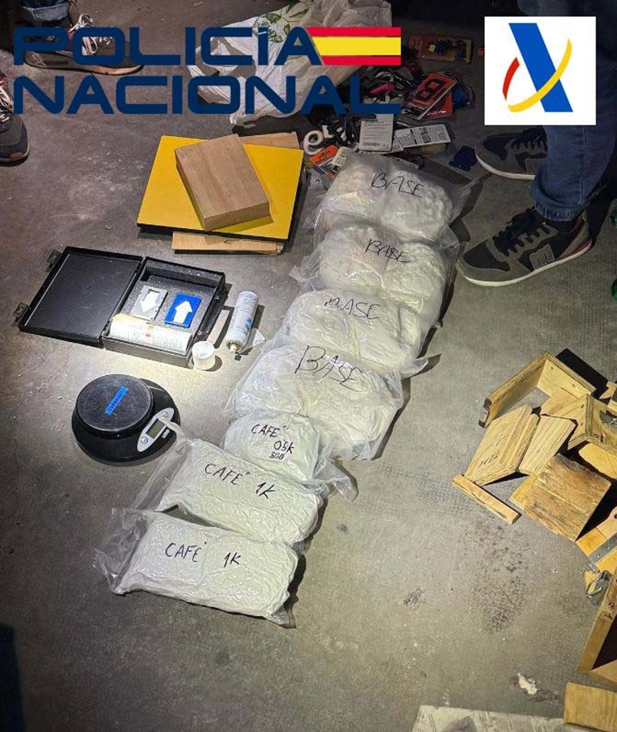La organización contaba también con un dispositivo para detectar localizadores que fue encontrado en otra de las inspecciones, junto con útiles y troqueles para la fabricación de los paquetes de cocaína.