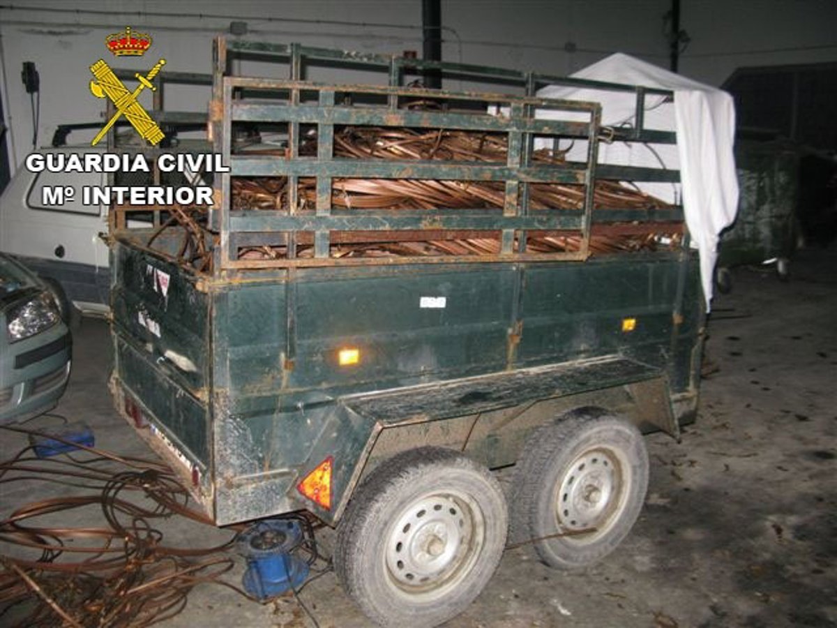 Según informa la Guardia Civil en nota de prensa, los detenidos están acusados de robar, el pasado 3 de enero, una bobina de cobre del interior de un transformador eléctrico de grandes dimensiones, situado en el mismo término municipal, que fue localizada posteriormente por la Guardia Civil, cargada en el remolque de un tractor dispuesto para ser trasladado.