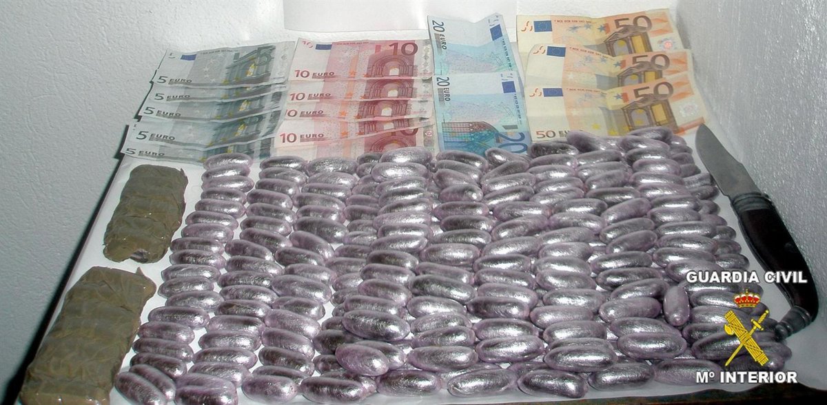 Ante las sospechas que pudieran transportar droga en el interior de sus cuerpos fueron trasladados al Hospital de Zafra para realizarles radiografías donde se pudo confirmar que en los intestinos de los ahora detenidos contenían cuerpos extraños con forma de bellotas, informa el Ministerio del Interior en nota de prensa.