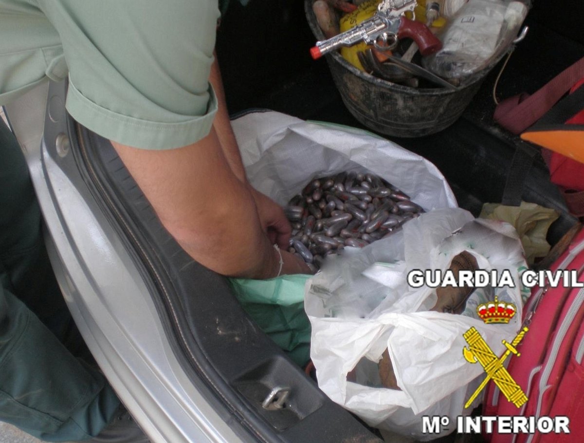 Tras la identificación e inspección minuciosa del turismo, se hallaron ocultas en el habitáculo de la rueda de repuesto, varias bolsas de plástico con 400 bellotas de hachís, con un peso de 4 kilos y 275 gramos.