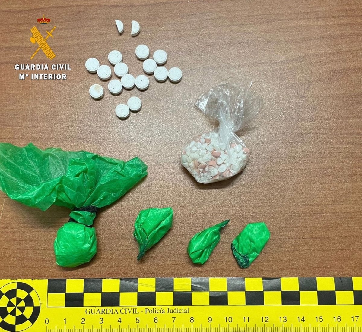 Una vez identificado su conductor, un joven de 25 años, los agentes registraron el vehículo, en el que hallaron 60 dosis de cocaína y 40 pastillas de anfetaminas, presuntamente, dispuestas para su venta, motivo por el cual se procedió a su detención y traslado hasta el acuartelamiento de la Guardia Civil de Trujillo, donde fueron instruidas las correspondientes diligencias policiales.