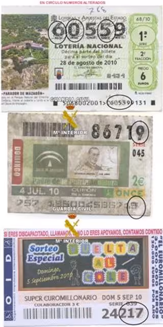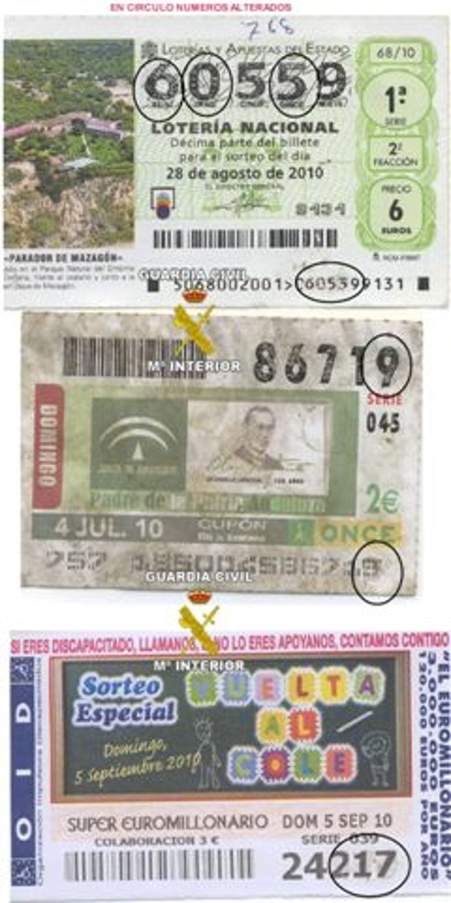 El detenido se informa de los números premiados en los sorteos, para posteriormente conseguir décimos de lotería no premiados, a los que les recorta números y dígitos del código, para con posterioridad pegarlos en otros decimos para hacerlos coincidir en el numero, con alguno de los decimos premiados, informa el Ministerio del Interior.