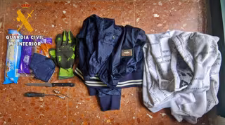 Estas prendas fueron posteriormente localizadas en un contenedor de basura cercano al supermercado y que habría utilizado en el momento del robo, así como el cuchillo que se hallaba tirado en los aparcamientos, ha informado la Guardia Civil en nota de prensa.