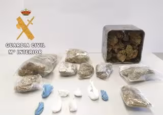 Posteriormente, y ante la presencia de los agentes de la Guardia Civil se lleva a cabo un registro minucioso de todas sus pertenencias, y entre las cuales llevaba ocho dosis de cocaína, una bolsa con ocho bolsitas de marihuana y 100 gramos de cogollos de la misma sustancia, todo ello dispuesto para su venta, así como incluidos también los diferentes envoltorios con el precio de venta de cada uno de ellos.