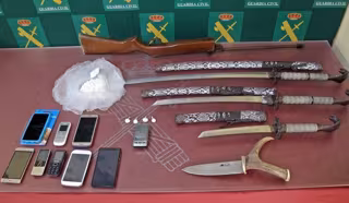 Posteriormente, se llevó a cabo la entrada y registro en su vivienda, donde se intervinieron 400 dosis de cocaína, así como material para la dosificación y venta de la droga, basculas de precisión, dinero en metálico, terminales telefónicos, un vehículo y armas prohibidas que se están analizando.