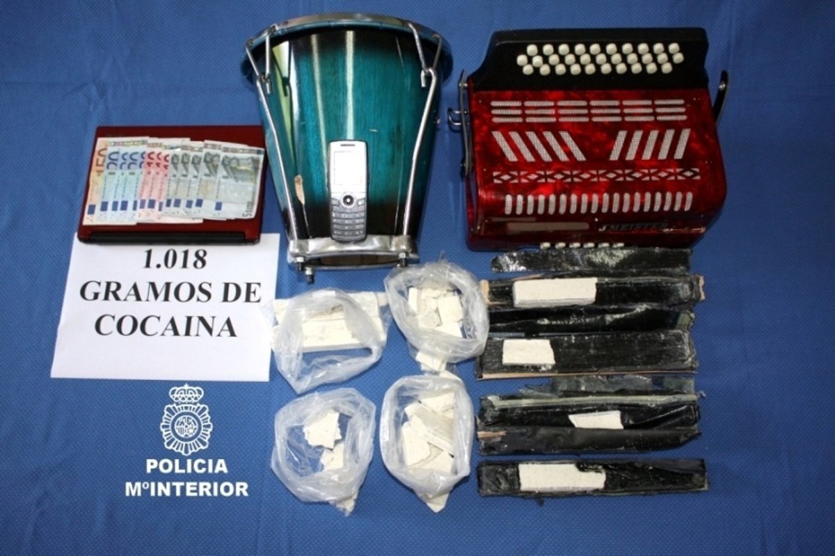 La droga venía oculta en el interior del acordeón en piezas que simulaban ser de madera y formaban parte de su estructura, según informa la Policía Nacional en nota de prensa.