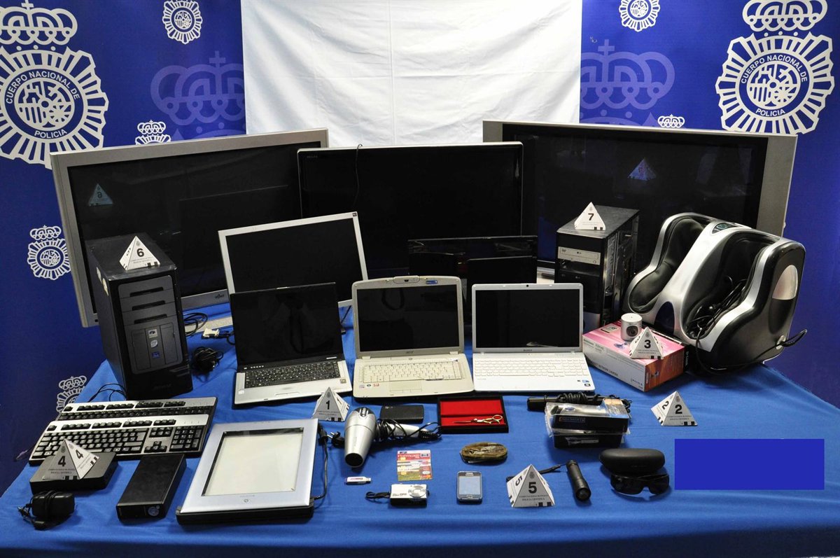 La investigación llevada a cabo por la Policía Nacional dio como fruto la plena identificación de los presuntos autores, y se realizó, previa autorización judicial, el registro del domicilio de uno de ellos, en el que se incautaron tres televisores, tres ordenadores portátiles, dos monitores de ordenadores, un masajeador de pies, dos torres de ordenador, así como utensilios de peluquería y documentación variada.