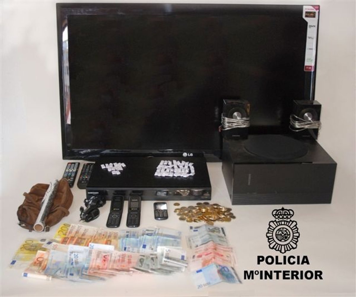 En el registro se le incautaron 35 papelinas de cocaína y 12 papelinas de heroína, dispuestas para su venta, utensilios para la manipulación de sustancias estupefacientes, 2.000 euros en efectivo y diversos aparatos de audio y video, informa la Policía en nota de prensa.