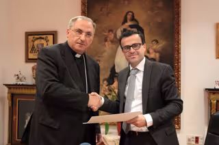 Foto de archivo del convenio entre la Diputación de Badajoz y el Arzobispado de Mérida-Badajoz - DIPUTACIÓN DE BADAJOZ