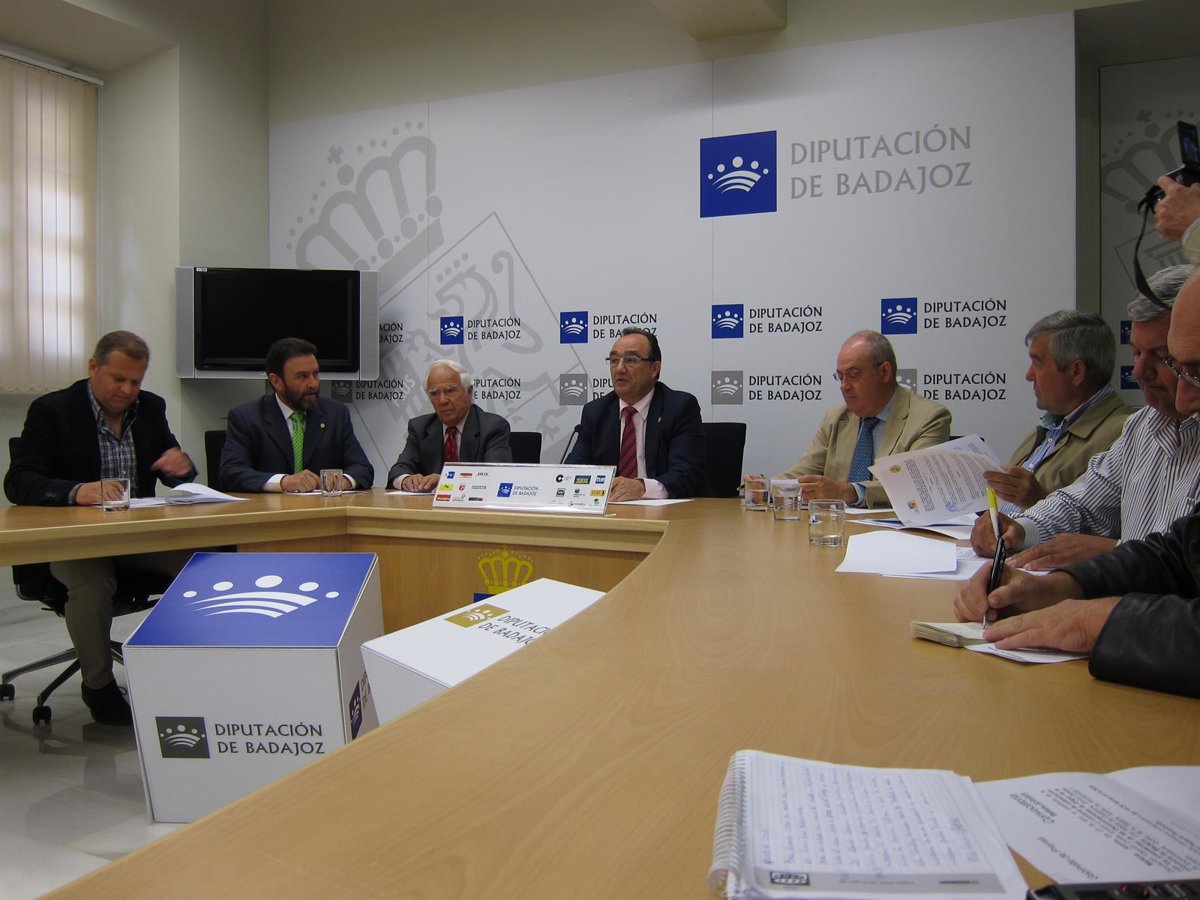 El presidente de la diputación, Valentín Cortés, ha suscrito este jueves este convenio anual con los presidentes de Aceite de Monterrubio, Emilio Caballero; de Dehesa de Extremadura, Álvaro Rivas; de Quesos de La Serena, Diego Morillo; de Vinos Ribera del Guadiana, Antonio Mateo Rosado; de Corderex, Francisco Aragón; y de Ternera de Extremadura, Enrique de Muslera.