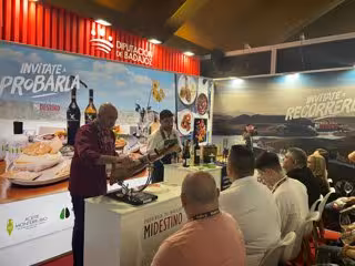Y lo hace acompañada de las Denominaciones de Origen y de las Indicaciones Geográficas Protegidas de la provincia de Badajoz. Durante estos días, en el stand de la institución provincial se están celebrando charlas técnicas de vinos con DO Ribera del Guadiana, a cargo del sumiller de esta Denominación de Origen, Carlos Vivas Vivas, y de formación en corte de jamón, ofrecidas por el cortador oficial de la Denominación de Origen Dehesa de Extremadura, Jesús González León.