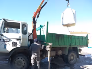 Un camión carga sal para distribuirla entre los ayuntamientos. - DIPUTACIÓN DE BADAJOZ