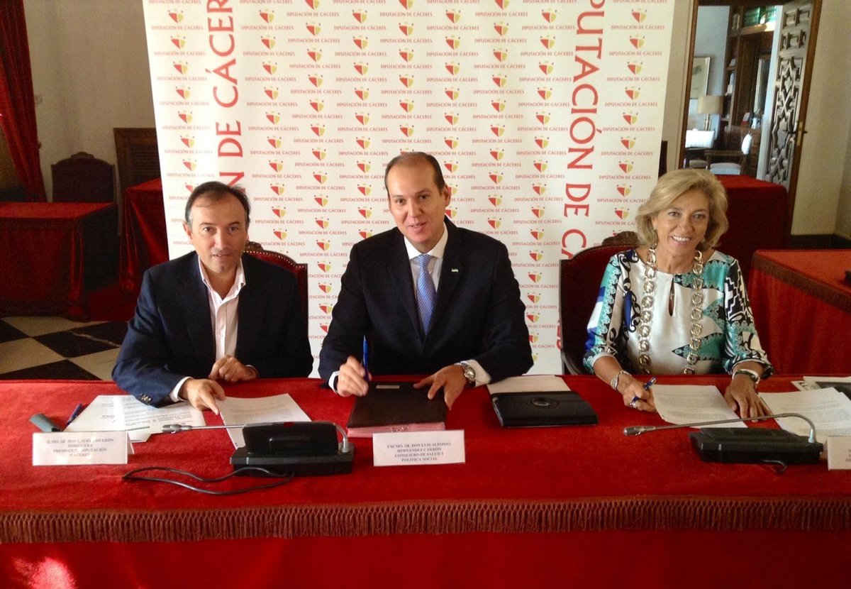 La firma de estos acuerdos ha tenido lugar este viernes en el transcurso de una rueda de prensa en la que han estado presentes el presidente de la Diputación de Cáceres, Laureano León, junto al consejero de Salud y Política Social, Luis Alfonso Hernández Carrón, y la directora del Sepad, Cristina Herrera.