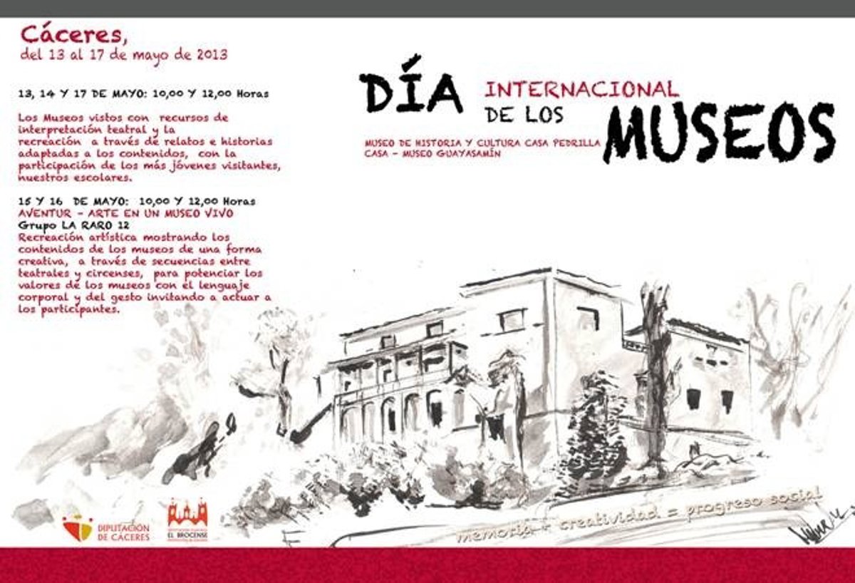 Bajo el lema 'Memoria + creatividad = progreso social', los museos de la Diputación de Cáceres (el Museo de Historia y Cultura 'Casa Pedrilla' y la Casa-Museo 'Guayasamín', en Cáceres, y el Museo Etnográfico Textil 'Pérez Enciso', de Plasencia) han enfocado esta celebración a los más jóvenes, según ha informado la Diputación cacereña en nota de prensa.