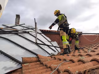 Bomberos del Sepei de la Diputación de Cáceres retiran una cubierta desplazada por la borras Kristin - DIPUTACIÓN DE CÁCERES