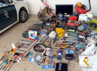 El delegado del Gobierno ha explicado que, tras la inspección del interior del turismo, los agentes hallaron numerosos objetos presuntamente procedentes del robo, combustible, mulas mecánicas, eléctricas, herramientas, televisores, utensilios para matanzas caseras, motores, bombas de agua y podadoras, entre otros objetos.