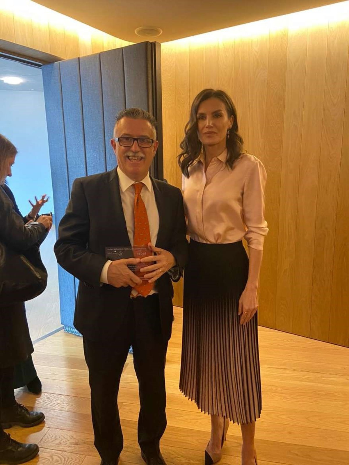 El doctor Enrique Galán junto a la Reina, Doña Letizia, al recoger un premio sobre diagnóstico de enfermedades raras - JUNTA DE EXTREMADURA