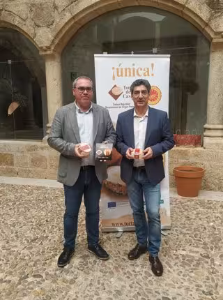 El presidente de la DOP Torta del Casar, Ángel Pacheco, y el gerente Javier Muñoz - EUROPA PRESS