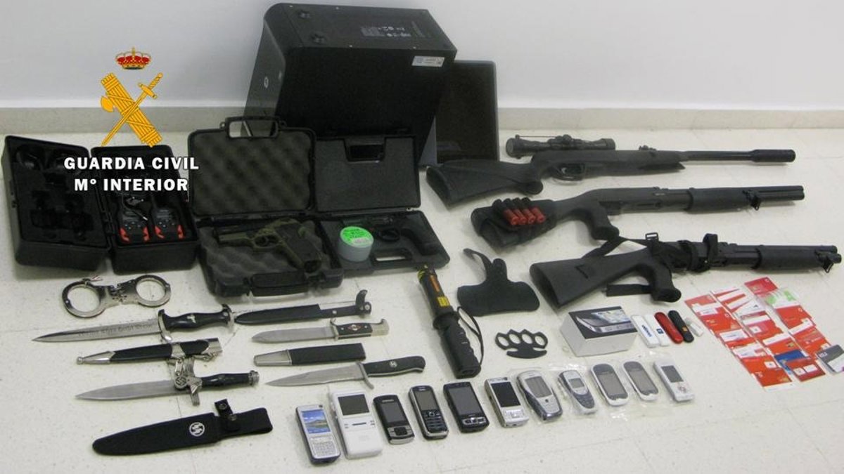 Un registro judicial en el domicilio de ambos ha permitido la intervención de un ordenador y cin 'pen drive', que están siendo analizados, varias tarjetas de crédito, cartillas de ahorro bancarias y documentación variada que les vincula con los hechos; 11 terminales móviles, 2 pistolas y tres carabinas de aire comprimido, 5 cuchillos con simbología nazi, 1 puño americano, 1 juego de grilletes y 1 par de emisoras.