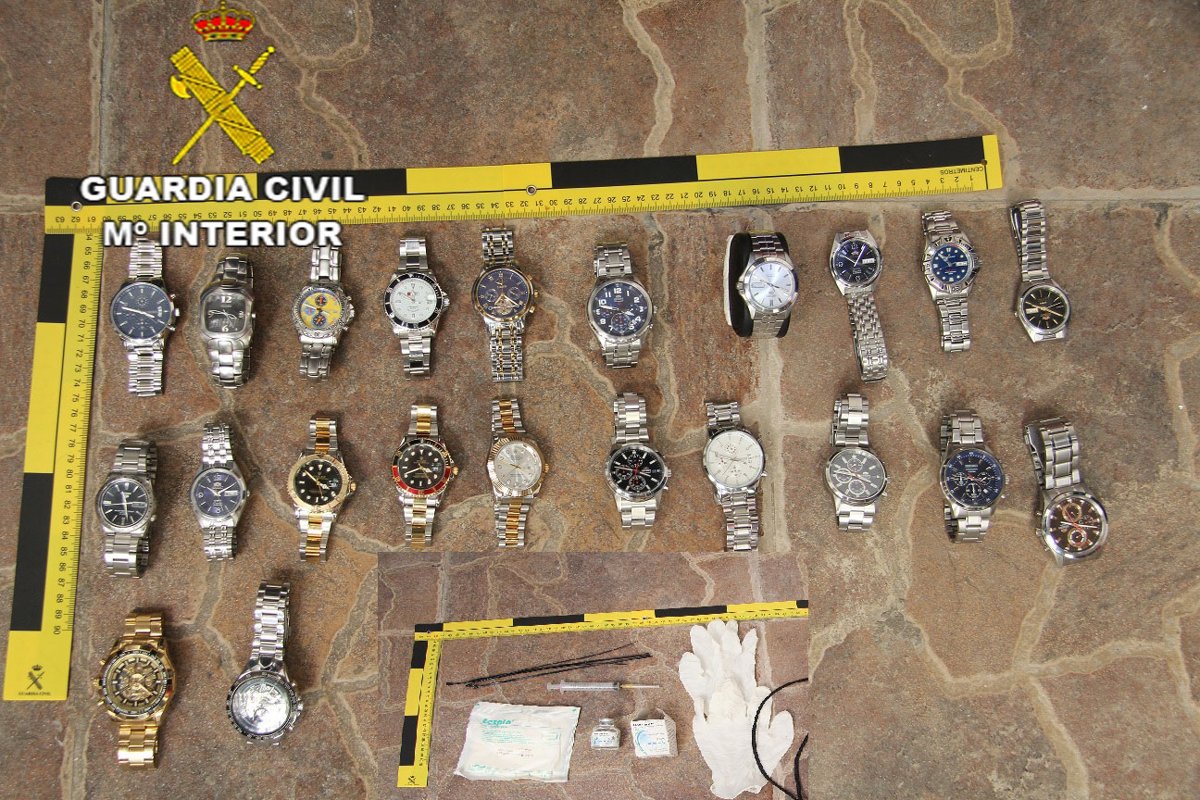 Tras su detención, la Guardia Civil encontró en el domicilio de los dos detenidos, el dinero, los 22 relojes y un teléfono móvil, todo ello propiedad de la víctima.