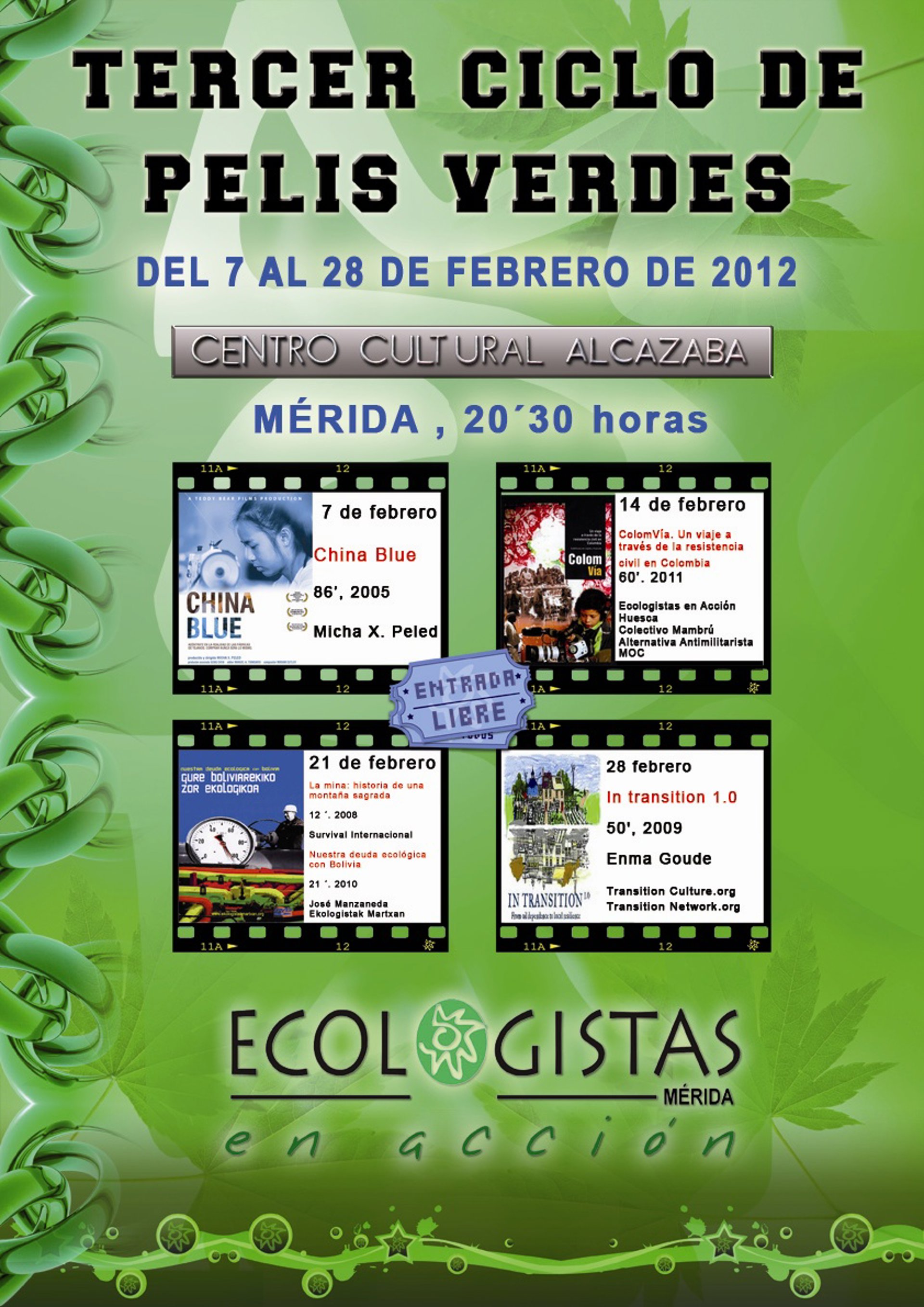 Con este Ciclo de Pelis Verdes, Ecologistas en Acción se centra en los derechos humanos y laborales, el comercio justo, la no violencia, la resistencia civil, la deuda ecológica, la lucha de los pueblos indígenas y el Movimiento de Transición.