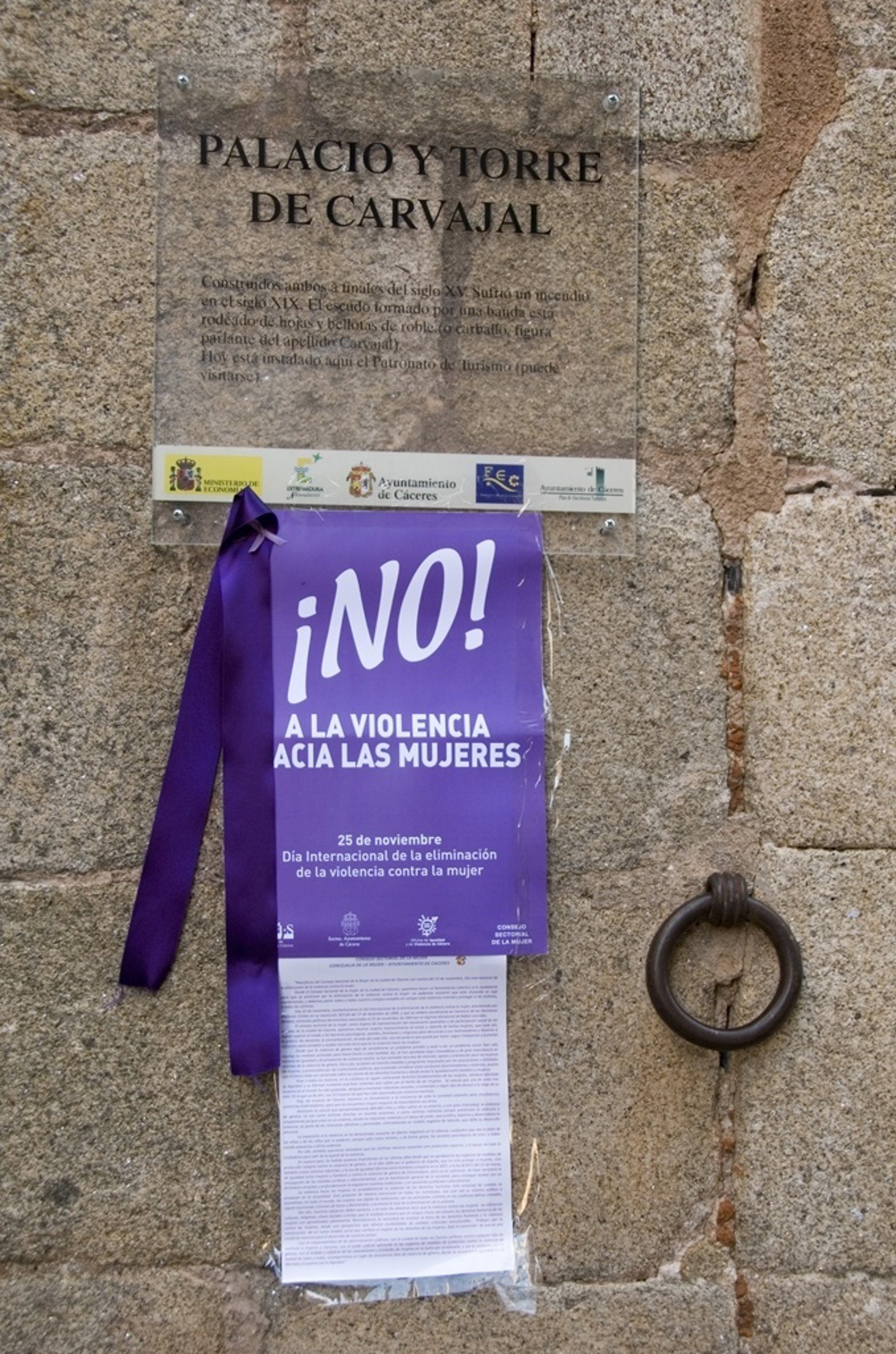 Los edificios pertenecientes a la Diputación Provincial de Cáceres lucen este viernes lazos malva en sus fachadas para conmemorar el Día Internacional de la Eliminación de la Violencia contra la Mujer, una de las iniciativas programadas por el área de Igualdad de la institución provincial.
