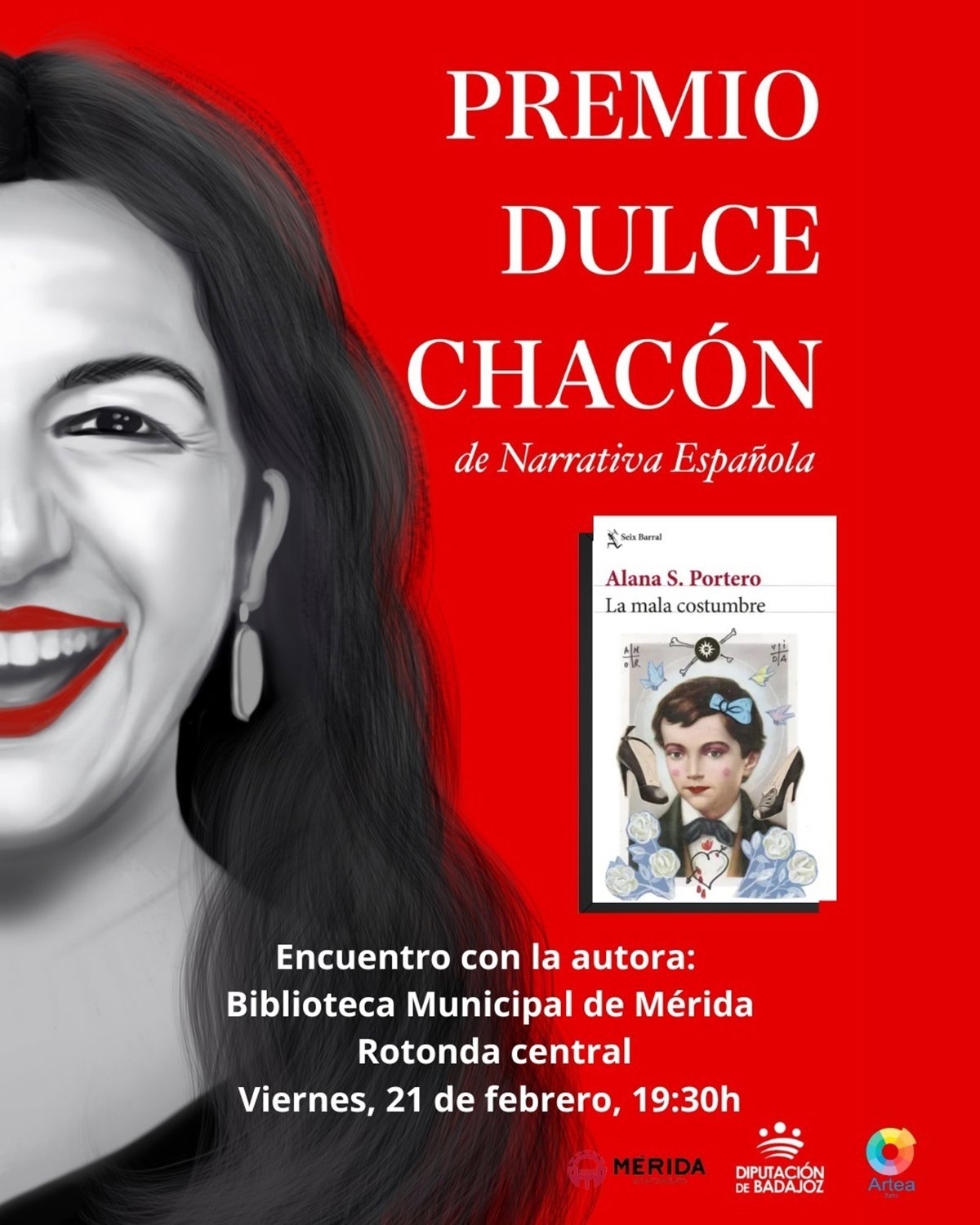 Con su obra 'La mala costumbre', Alana S. Portero ha ganado el Premio Dulce Chacón convocado por la Diputación de Badajoz. Un jurado popular, integrado por participantes en los clubes de lectura de la biblioteca municipal de Mérida, tomó parte en las deliberaciones para otorgar el galardón.