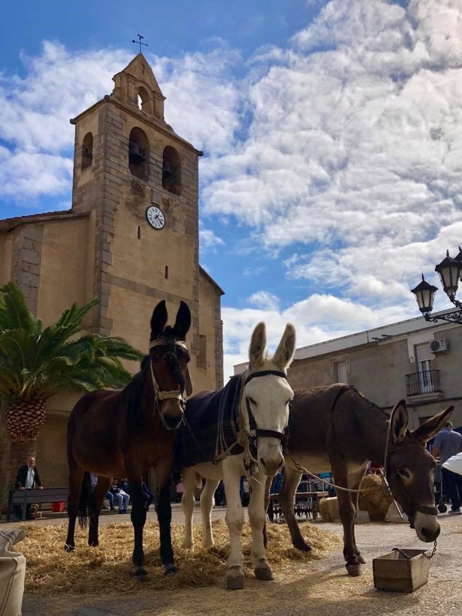 Burros en la plaza de Esparragosa de la Serena. - ASOCIACIÓN ASBARAGUZZA