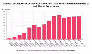 La comunidad autónoma de Extremadura ha administrado 33.125 dosis de la vacuna contra la Covid-19, el 82,2 por ciento del total de 40.275 recibidas.