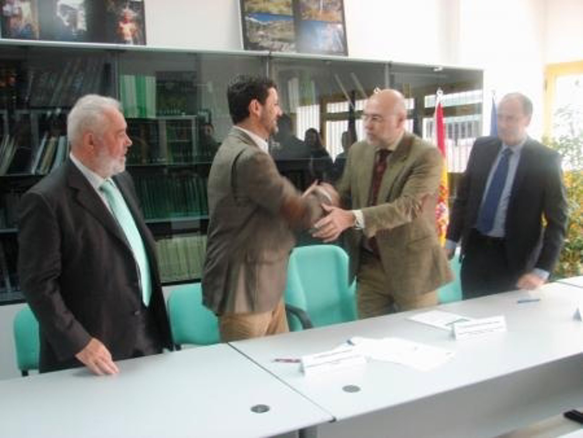 El consejero de Agricultura, Desarrollo Rural, Medio Ambiente y Energía de Extremadura, José Antonio Echávarri, el presidente de la Sociedad de Fomento para la Cría Caballar de España (que regula las carreras de caballos en el país), Manuel García Orozco, y el presidente de la Fundación Proturf, Carlos Alcázar Sánchez, han firmado en este centro formativo un convenio de colaboración para impartir toda la formación necesaria en esta materia.