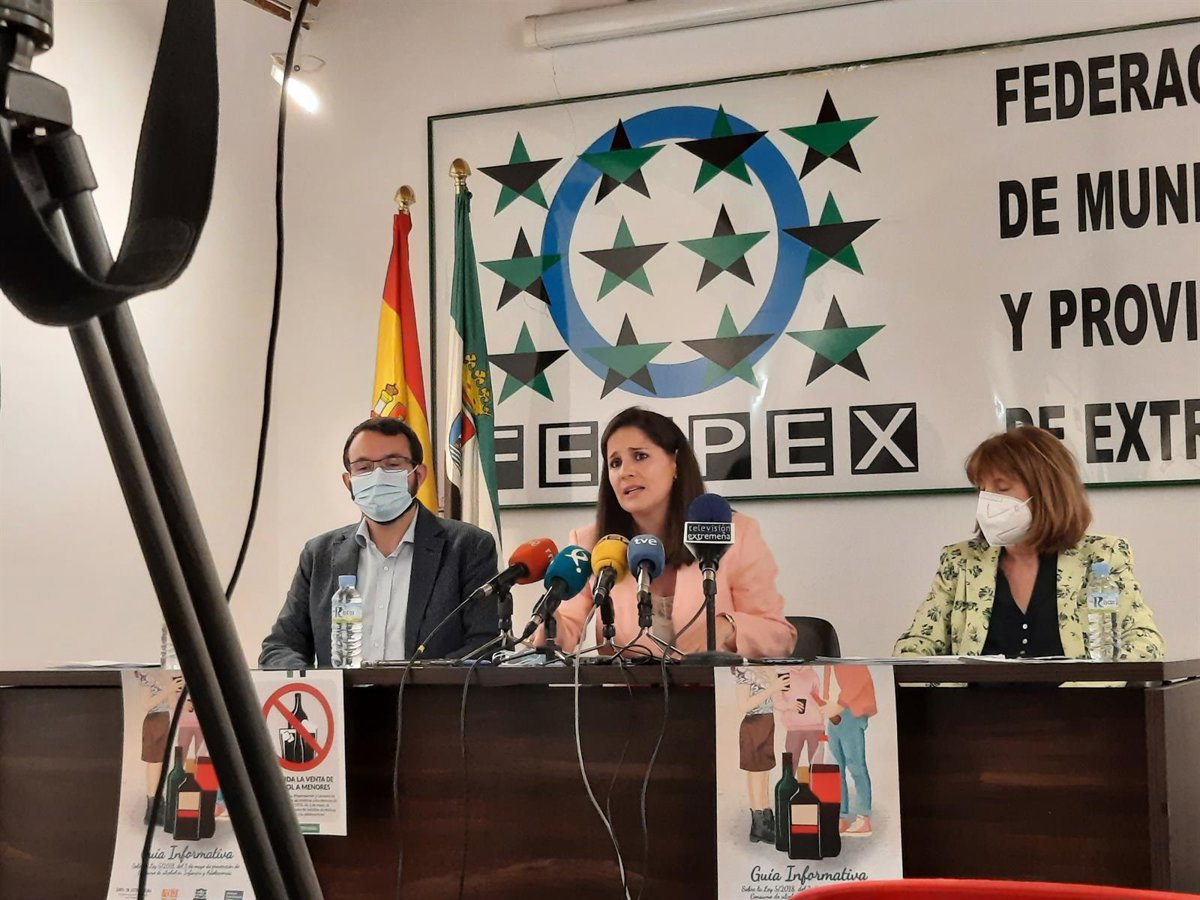 La consejera de Igualdad, Isabel Gil Rosiña, el presidente de la Fempex, Francisco Buenavista, y la directora general de Salud Pública, Pilar Guijarro, en la presentación de una guía informativa sobre consumo de alcohol entre jóvenes - EUROPA PRESS