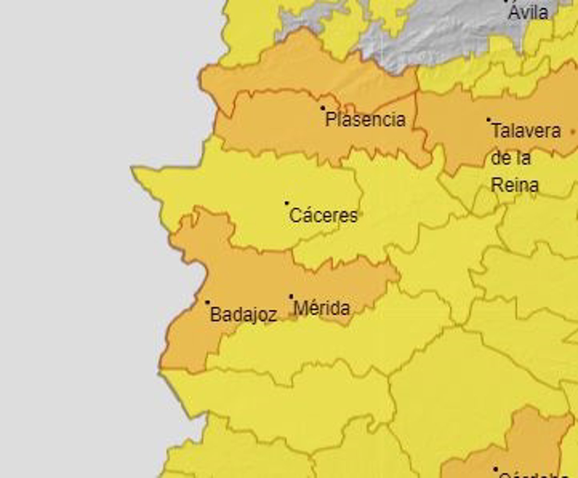 La zona de las Vegas del Guadiana y los valles del Tajo y el Alagón, así como el Norte de Cáceres, permanecerán este domingo, 18 de julio, en alerta naranja por altas temperaturas, que podrán alcanzar los 40 grados de máxima, según las previsiones de la Agencia Estatal de Meteorología.