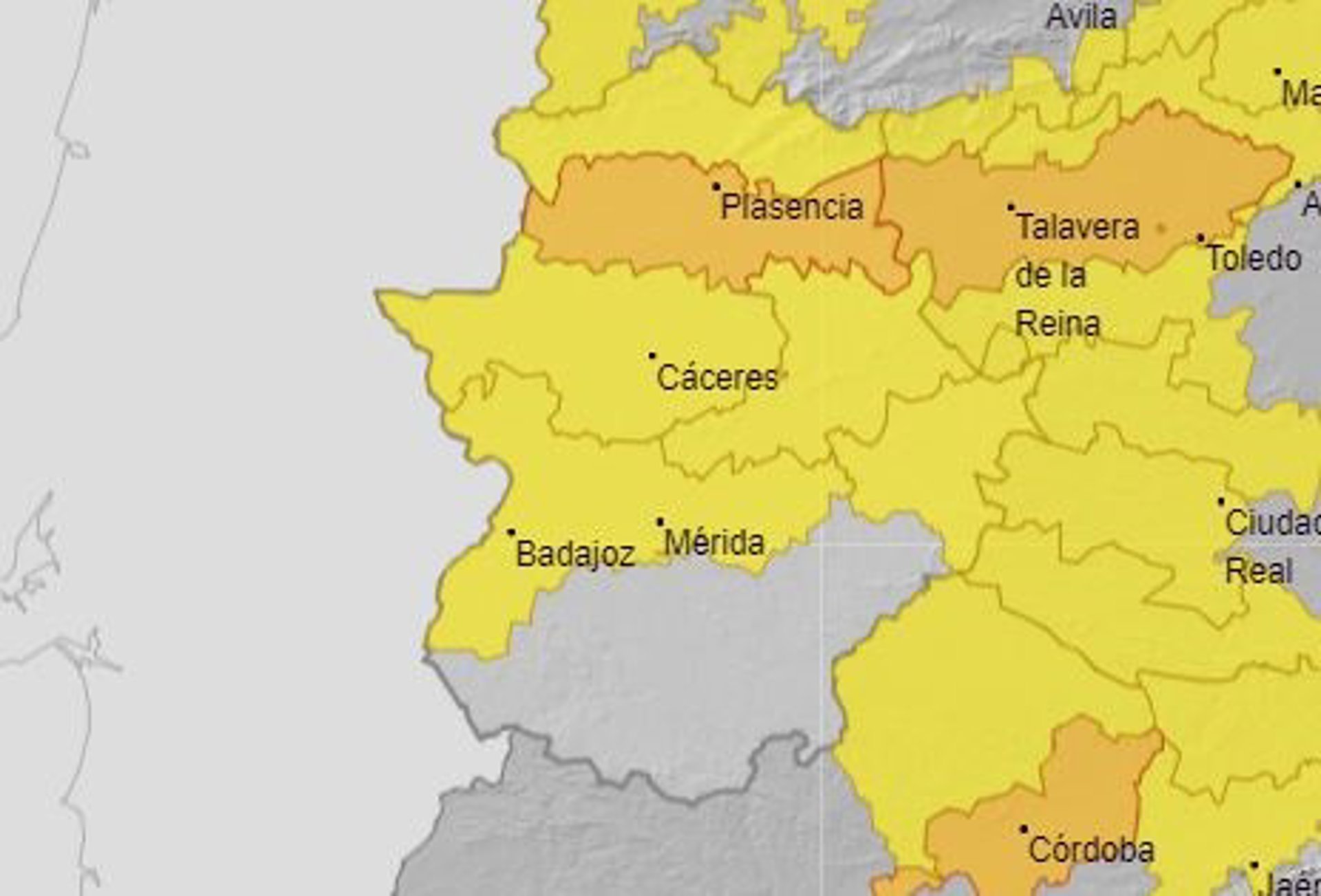 Esta sera la única zona que estará bajo aviso naranja, mientras que el resto de la provincia de Cáceres, y las Vegas del Guadiana, en la de Badajoz, permanecerán en riesgo amarillo.
