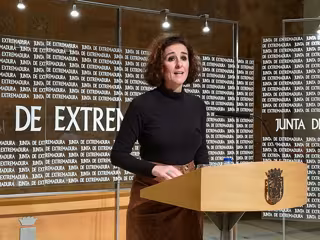 Olga García, consejera para la Transición Ecológica y Sostenibilidad de la Junta de Extremadura, en rueda de prensa para hacer balance fotovoltaico del año 2019 en la región - EUROPA PRESS