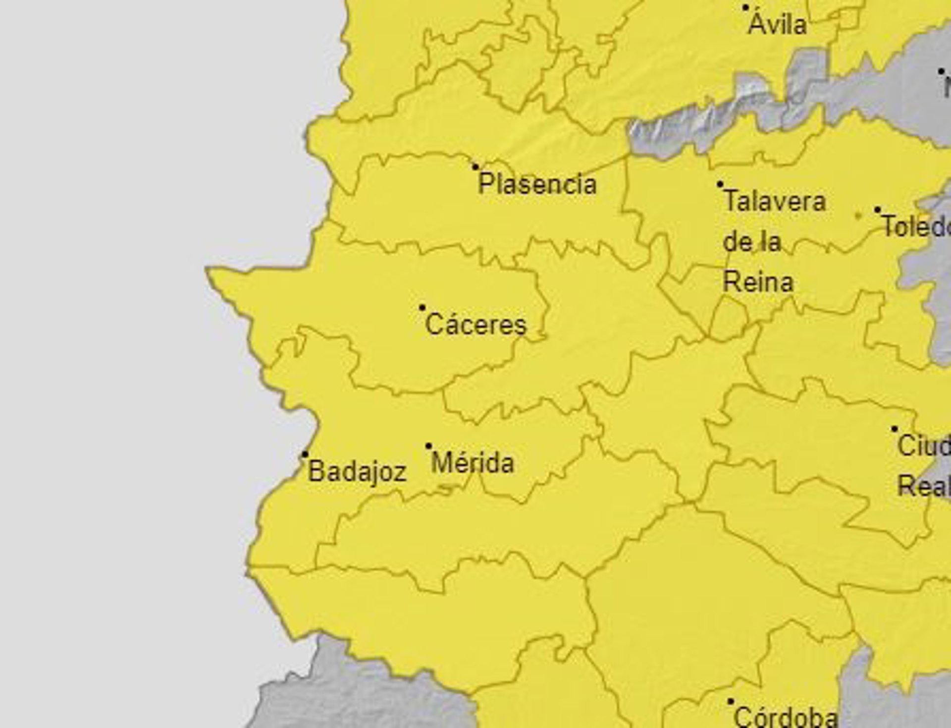 Avisos amarillos por lluvias y tormentas en Extremadura - AEMET