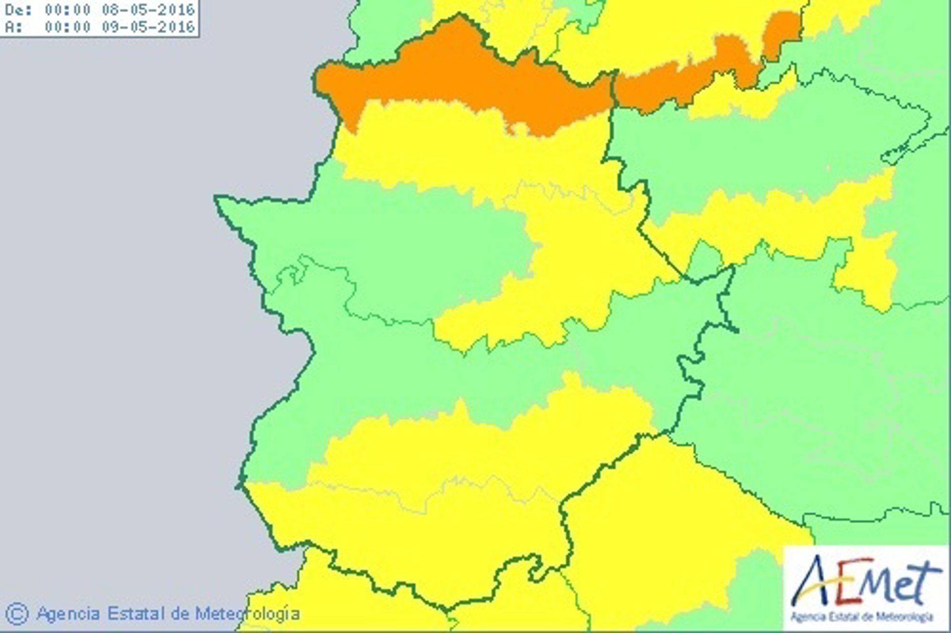 Hasta el momento, la Aemet avanza de cara al lunes un aviso, de nivel amarillo, para el Norte de Cáceres, entre las 00,00 y las 21,00 horas, ante la posibilidad de acumular 40 litros en 12 horas.