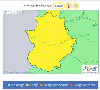 El aviso estará activado entre las 12,00 y las 23,00 horas por tormentas, que podrían localizarse en cualquier punto de la geografía extremeña.